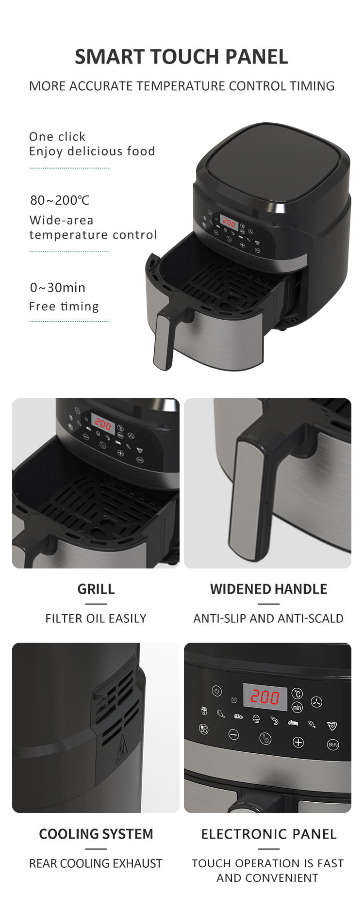 ◆ Eenvoudige werking met ingebouwde 8 slimme menu's;